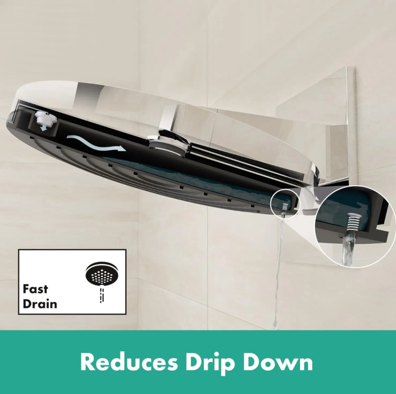 Насолоджуйтесь різноманітністю потоків з верхнім душем Pulsify 260 1jet, який має діаметр 260 мм та тип потоку PowderRain. Завдяки інноваційній технології Fast Drain вода швидко стікає під кутом 10°, що забезпечує легкість у догляді.