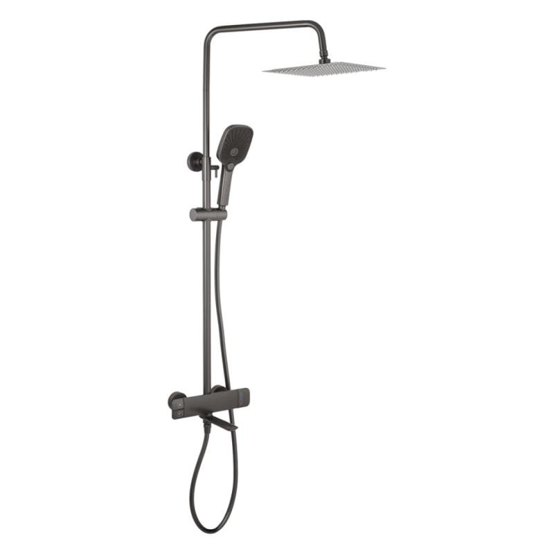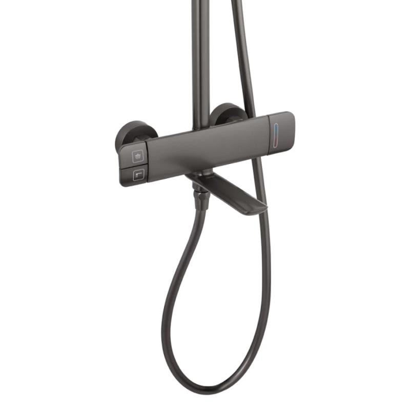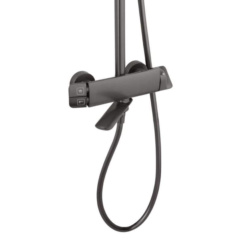 Система виготовлена з міцної латуні та ABS-пластику, що гарантує довговічність і стійкість до зношування. Матова поверхня у графітовому кольорі надає виробу елегантного і сучасного вигляду, який гармонійно впишеться в будь-який інтер'єр.