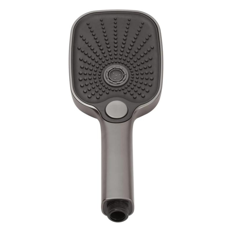 Ручний душ із прямокутною лійкою розміром 100x122 мм, яка має три режими струменя і вбудований аератор для економії води.