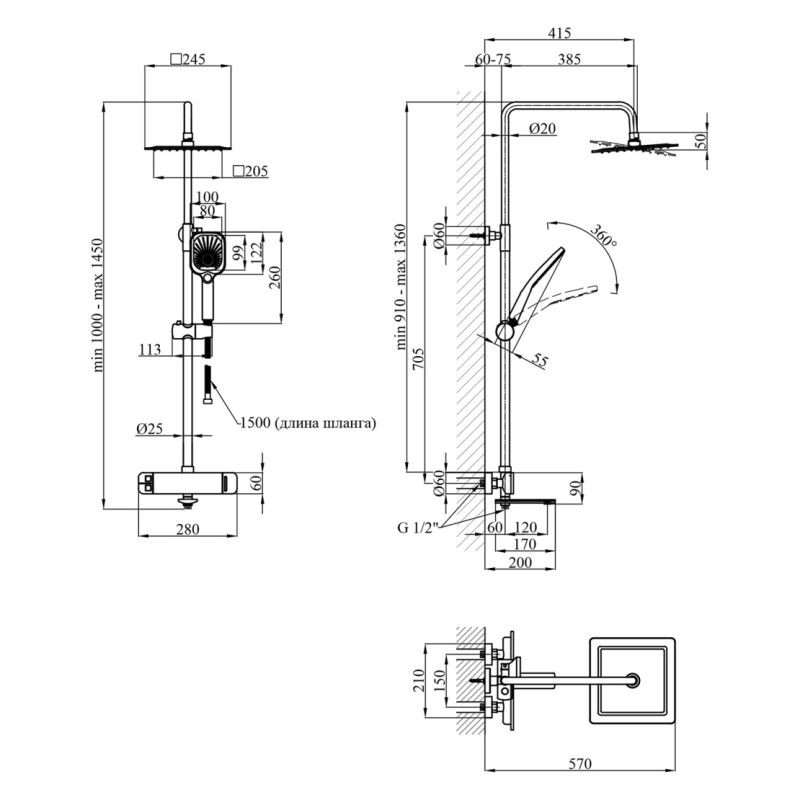 Довжина душового шлангу, мм 1500