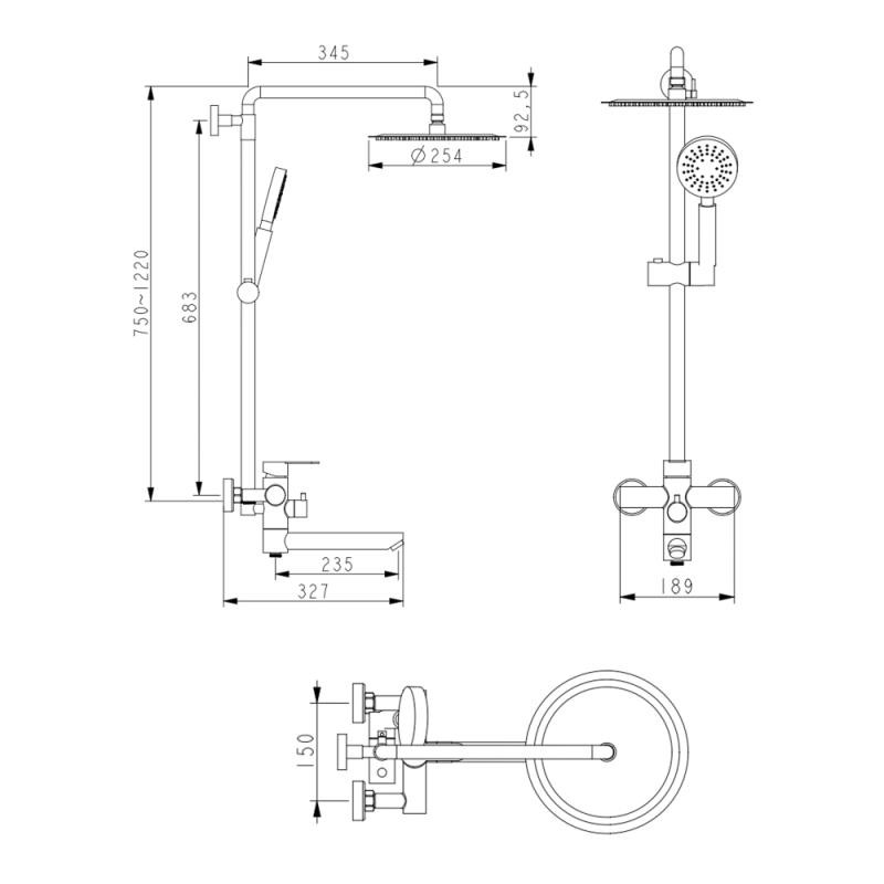Душова система Lidz Aria LDKUB1033NKS46110 - незамінний атрибут для приємної та звичної кожній сучасній людині гігієнічної процедури. До складу входить змішувач, верхній та ручний душ, а також зручна, регульована по висоті, душова стійка.