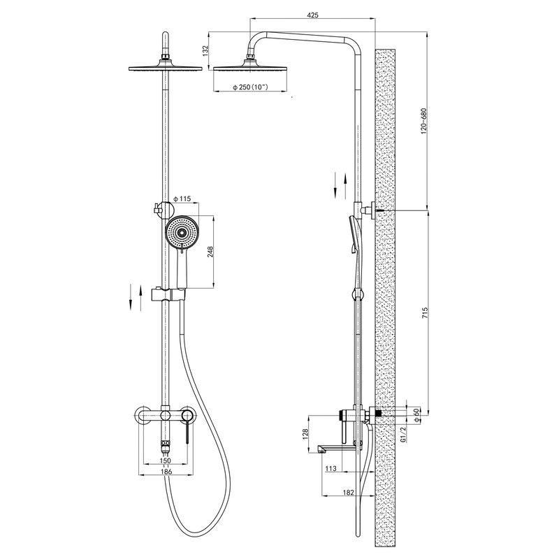 • Ширина верхнього душа: 250 мм