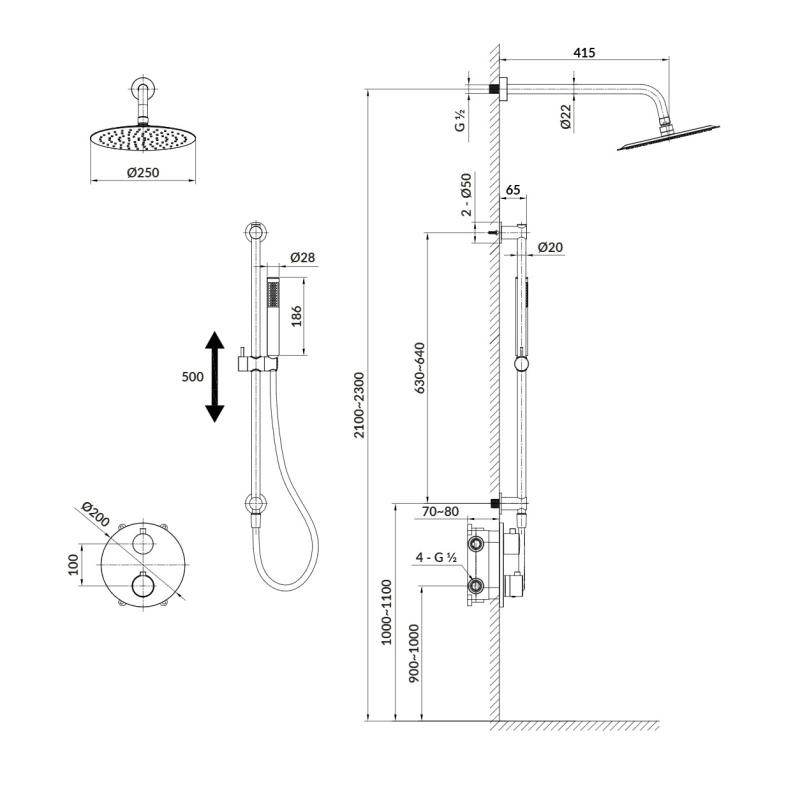 - ультратонкий тропічний душ SLIM товщиною 2 мм та діаметром 25 см, виконаний з нержавіючої сталі;