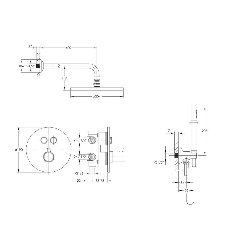 Верхній душ із настінним кронштейном Imprese SMART CLICK (арт. ZMK101901214):