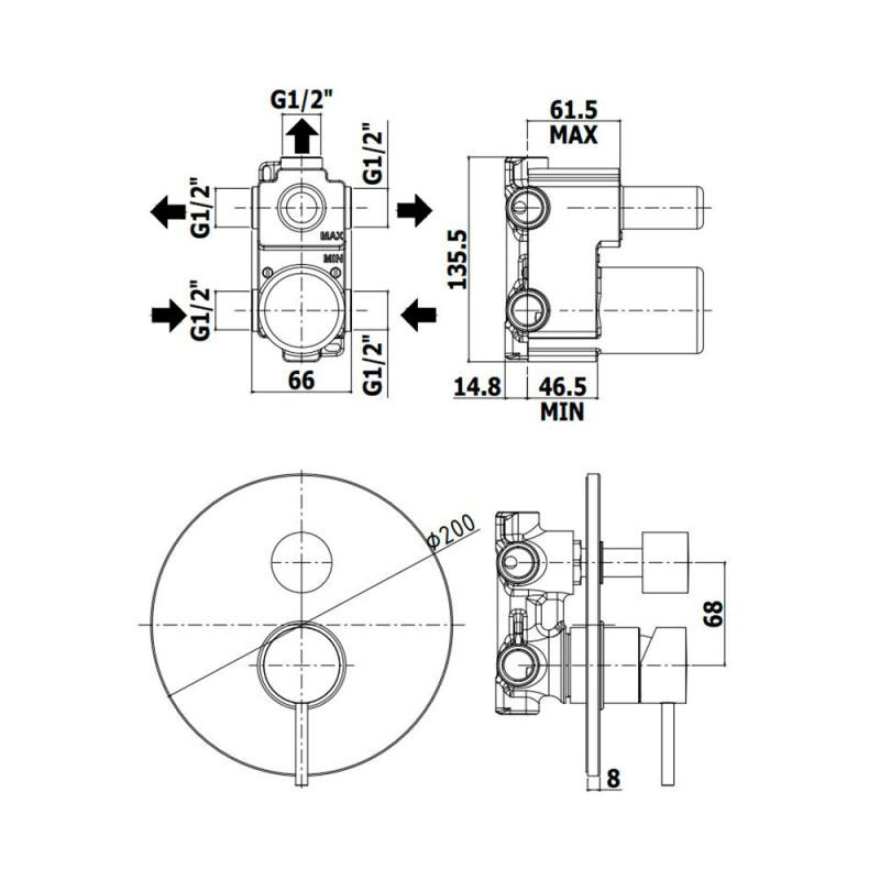 Змішувач для душу Paffoni Light з відвідним патроном, 3 споживачі, чорний матовий (LIG019NO)