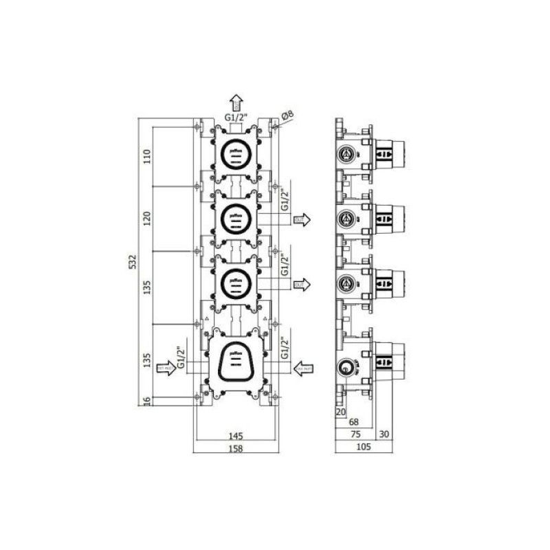 Прихований набір для термостатичного змішувача для душу/ванни (3 функції) Paffoni Modular box (MDBOX019)