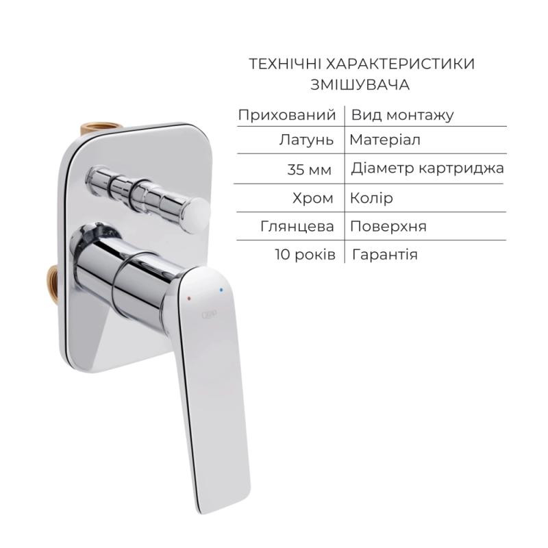 - Qtap Vlasta Змішувач для душу прихованого монтажу на два споживачі QTVLA6028102NC Chrome