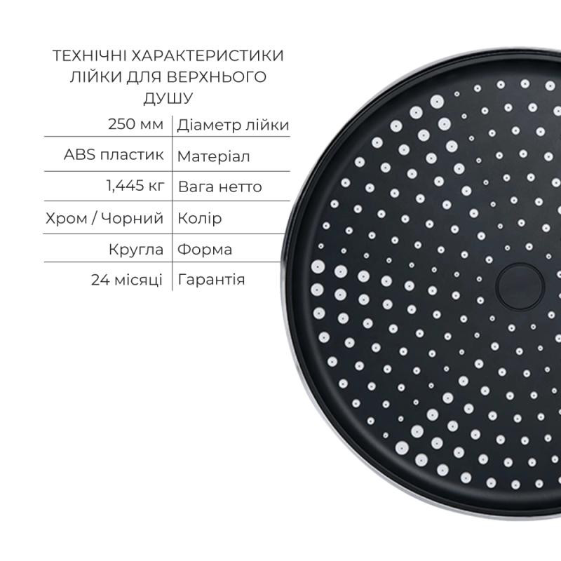 - Qtap Hlavova Лійка для верхнього душу D 250 мм округла QTHLA107CRM45948 Chrome