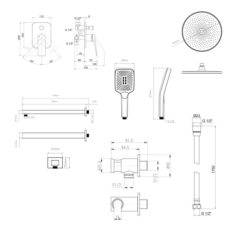 - Qtap Trubice Кронштейн для верхнього душу прямокутний 400 мм QTTRU120CRM45928 Chrome