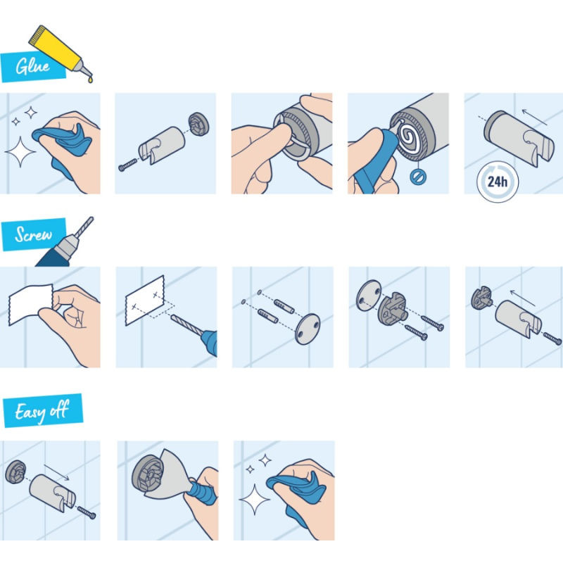 може використовуватися з проточним водонагрівачем для прикручування та прикручування. або приклеювання (GROHE QuickGlue S 41 247 000 продається окремо – необхідно 2 шт.)