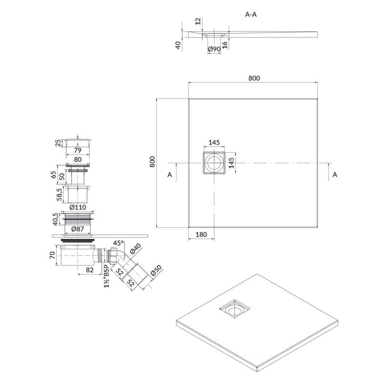 - висота піддону 4 см дозволяє встановити його безпосередньо на підлогу або ж врівень з плиткою