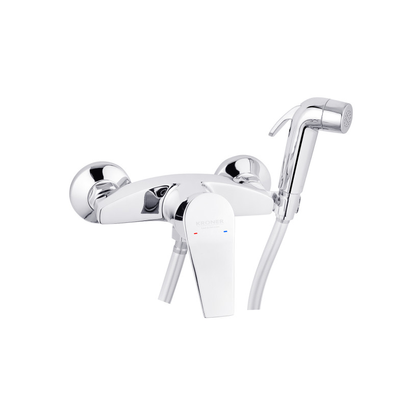 Комплект гігієнічного душу Kroner KRP Enzo-C052 CV023609 складається з настінного одноважільного змішувача, який встановлюється на 2 отвори, бідетти з важелем управління на корпусі та душового шланга. Тримач гігієнічної лійки інтегрований із самим змішувачем. Такий комплект стане чудовою заміною повноцінного біде.