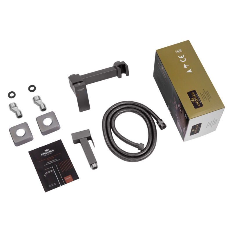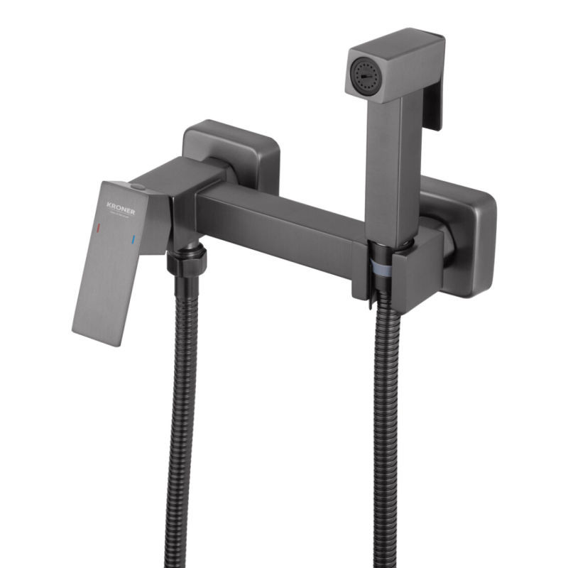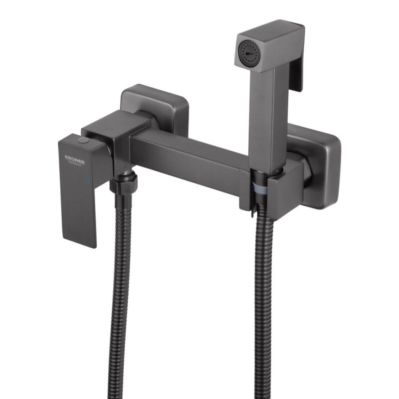 Набір для гігієнічного душу зі змішувачем Kroner KRP Edelstahl Kubus - PVD052 (графітовий) — стильне рішення для сучасної ванної кімнати з акцентом на практичність і довговічність.