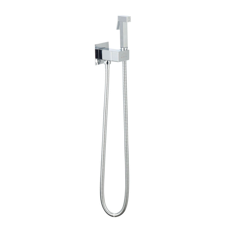 Qtap Inspai-Varius — набір для гігієнічного душу Chrome у сучасному квадратному дизайні, оснащений прогресивним картриджем для плавного та точного регулювання напору і температури води. Хромоване покриття забезпечує привабливий зовнішній вигляд, захист від корозії та легкий догляд, а продумана конструкція робить набір зручним і надійним рішенням для щоденного використання у ванній кімнаті або санвузлі.