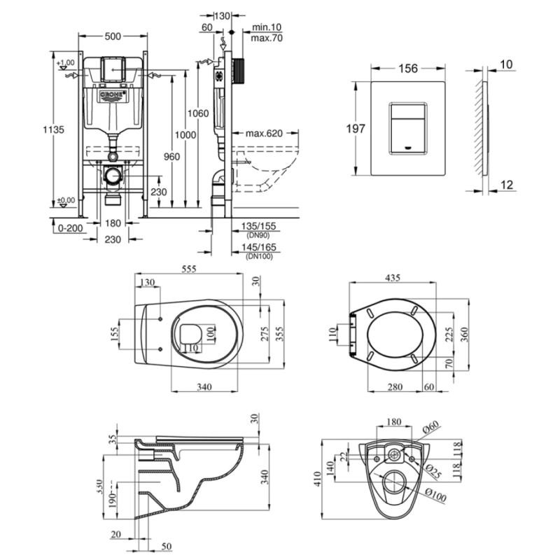 Інсталяція, панель змиву, унітаз, сидіння, деталі кріплення.