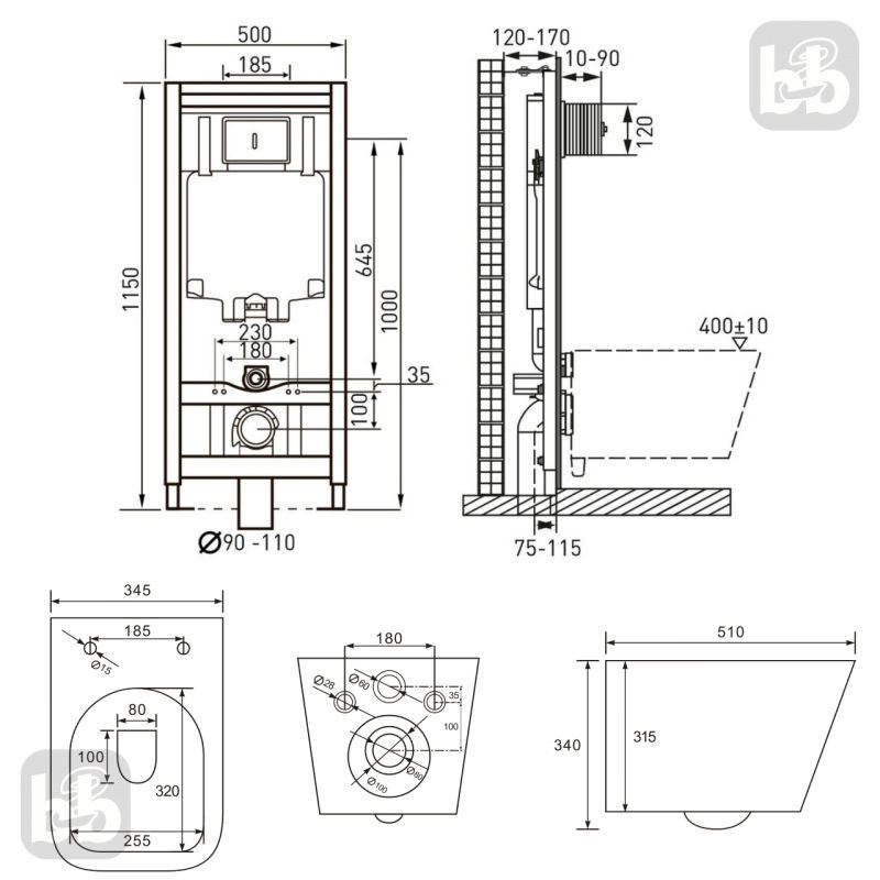 • Комплектація: Інсталяція, звукоізоляційна прокладка, унітаз, сидіння, клавіша