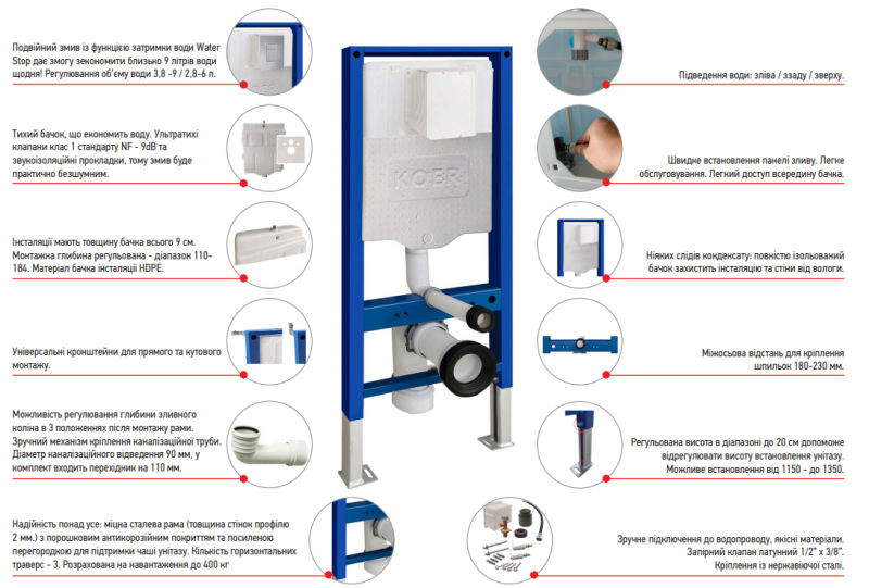 • Вид виробу: Інсталяція для підвісного унітазу, пневматична