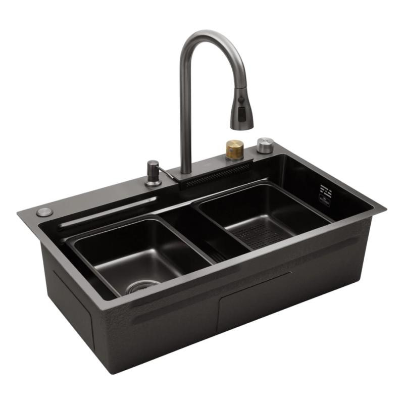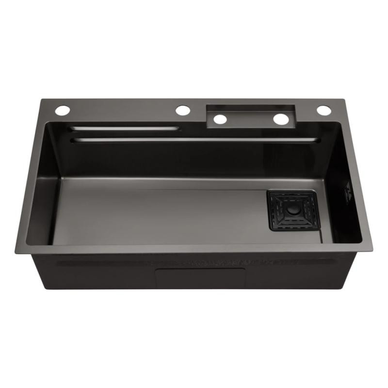 Опис Кухонна мийка Kroner KRP Schwarze-SET7545HM PVD (3/0/0.8 мм) (CV033382)