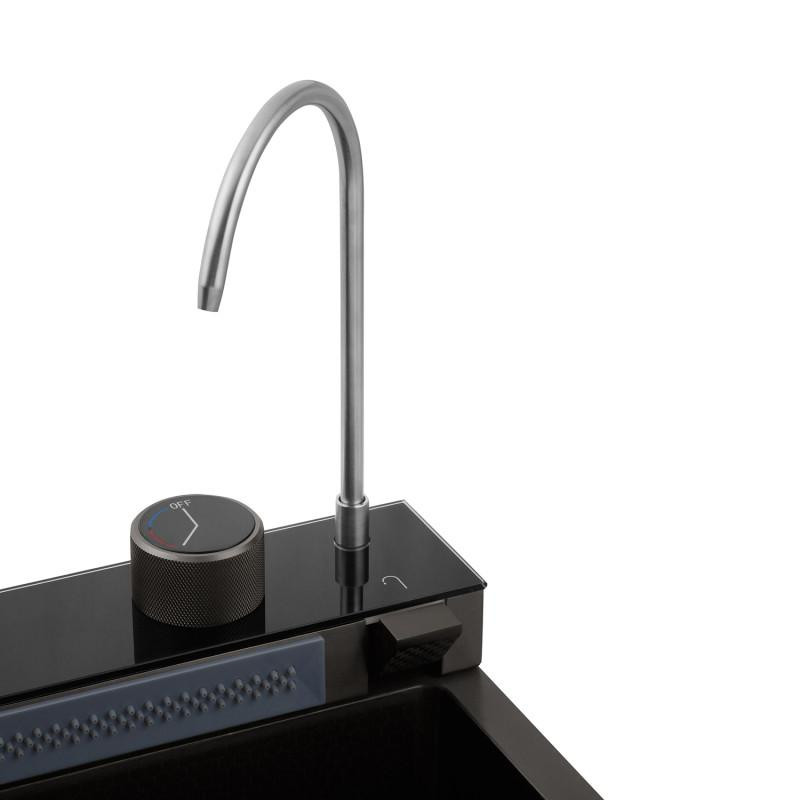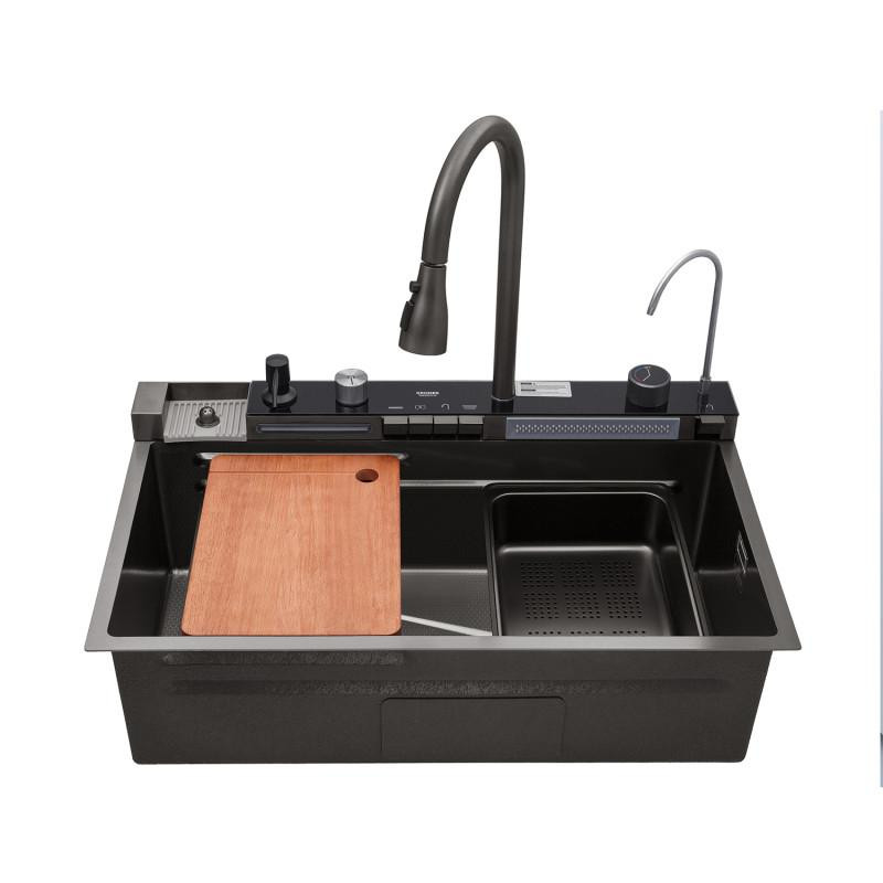 3. Комплектація: у комплекті з мийкою поставляється повний набір необхідних аксесуарів для комфортної роботи на кухні, таких як ополіскувач склянок, обробна дошка з цільного дерева, сифон, кошики для миття, дозатор для мийного засобу, змішувач з висувним виливом, кран "Крапля" для фільтрованої води.