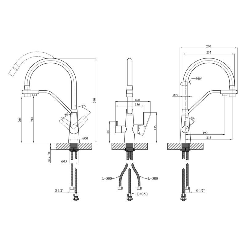 Діаметр підключення шлангів 1/2''