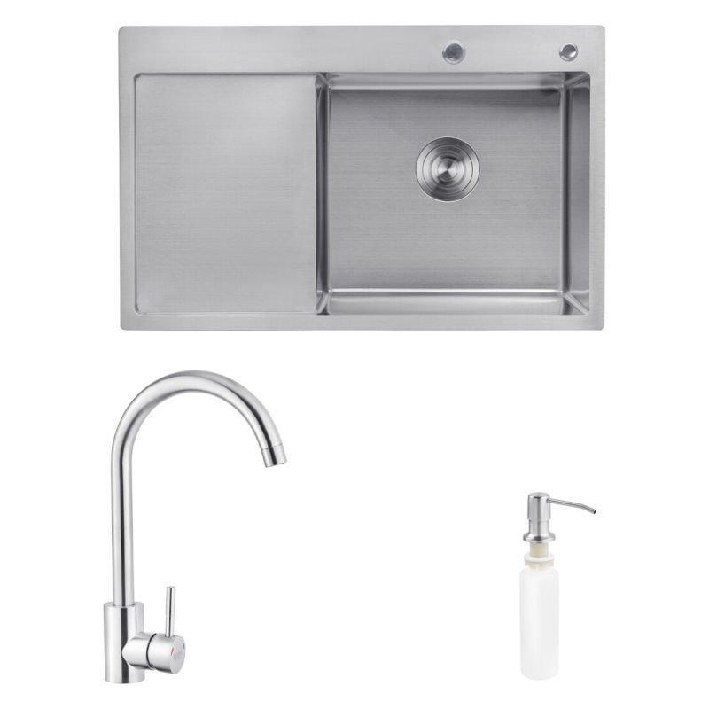 • Комплектація    Змішувач, гнучка підводка, кріплення, інструкція. Дозатор. Мийка, сифон, злив-перелив, кошиковий вентиль, кошик.