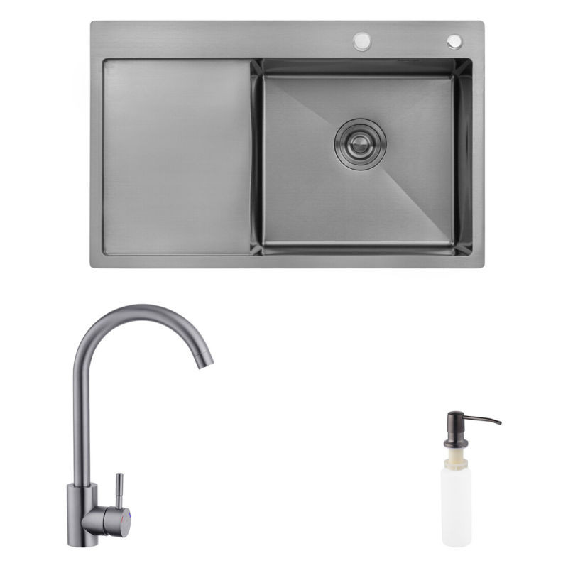 Кухонна мийка Kroner Schwarze-7849RHM PVD + Edelstahl Klassisch-SCH035PVD + Spender-026 (CVS30119) Відгуки