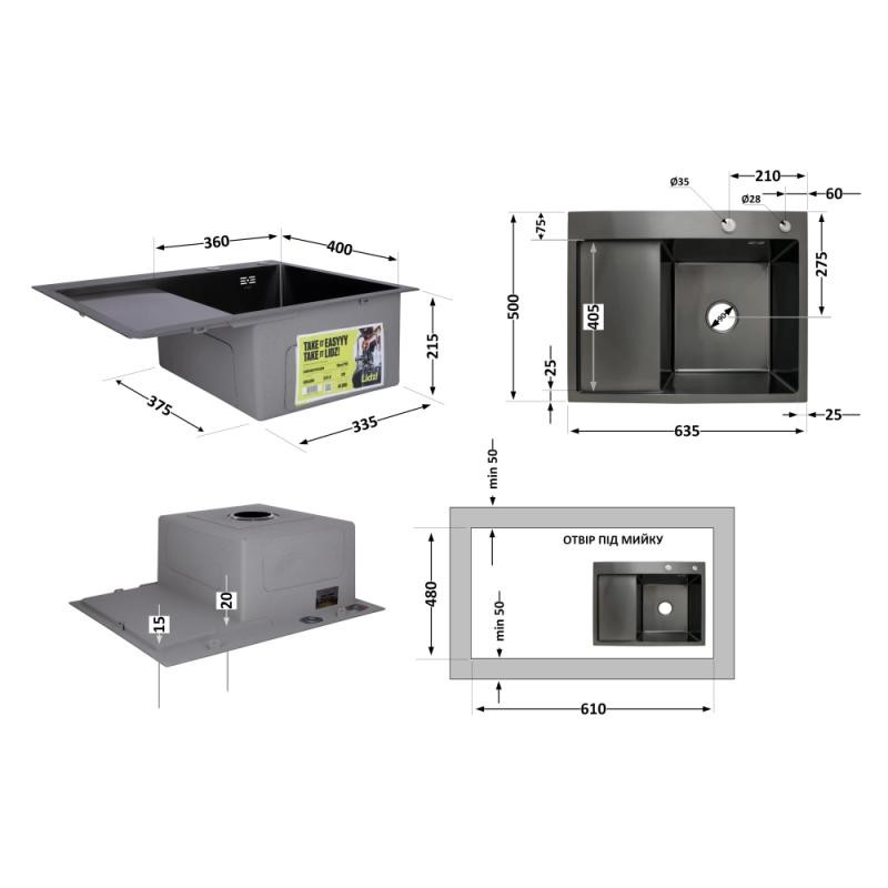 Ви можете купити Кухонна мийка Lidz Handmade H6350BR крило праворуч (LDH6350BRPVD45590) Brushed Black PVD 3,0/1,0 мм в Києві в інтернет магазині сантехніки Lexon за низькою ціною або оформити доставку по Україні: Харків, Одеса, Дніпро, Запоріжжя, Львів, Кривий Ріг, Миколаїв, Маріуполь, Вінниця, Херсон, Полтава, Чернігів, Черкаси, Житомир, Суми, Хмельницький , Чернівці, Рівне, Кропивницький, Івано-Франківськ, Кременчук, Тернопіль, Луцьк, Біла Церква, Краматорськ, Мелітополь, Нікополь, Слов'янськ, Ужгород, Бердянськ, Бровари та інші міста України.