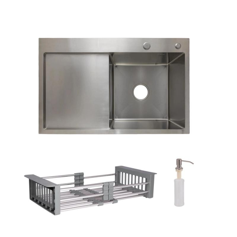 Мийка для кухні інтегрована крило зліва Brushed Steel 3,0/1,0 мм із зручним інтегрованим крилом зліва та вишуканою обробкою Brushed Steel ідеально підходить для будь-якої сучасної кухні. Нержавіюча сталь товщиною 3,0/1,0 мм забезпечує довговічність та стійкість до пошкоджень, роблячи це миття надійним та стильним вибором.