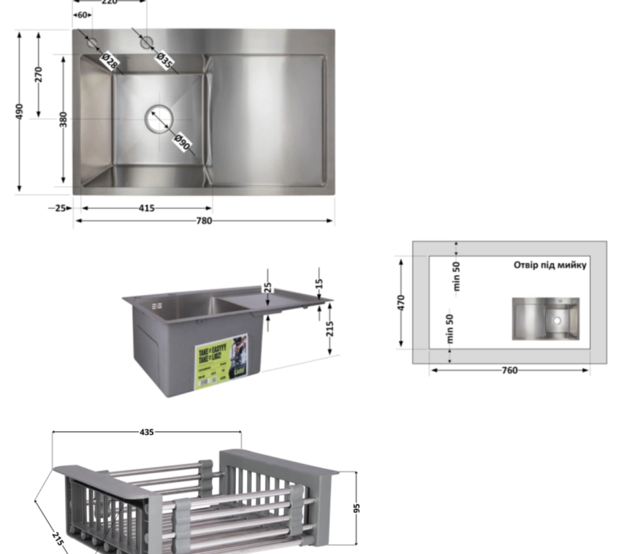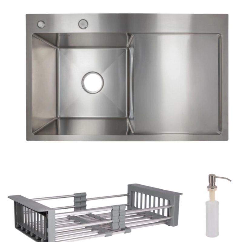 Комплект Lidz Handmade H7849R (Brushed) включає простору мийку з правим крилом, інтегрованим монтажем та аксесуарами - дозатором і кошиком Lidz K01G. Практичність і стиль в одному комплекті.