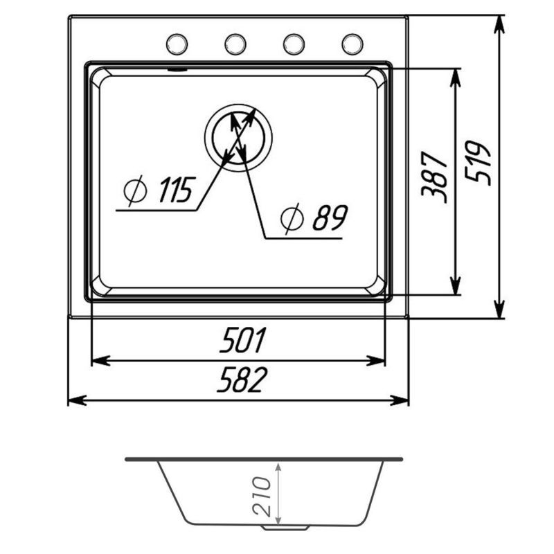 Глибина основної чаші, мм 210