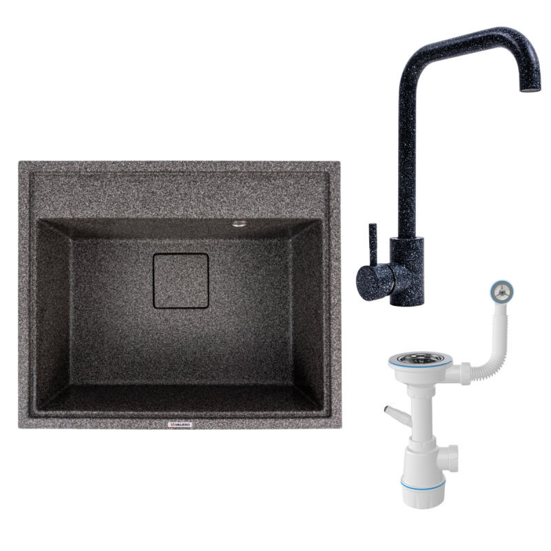 Мийка гранітна 6050 SHERLIT VALESO + Змішувач NS02A + Сифон (Графіт)
