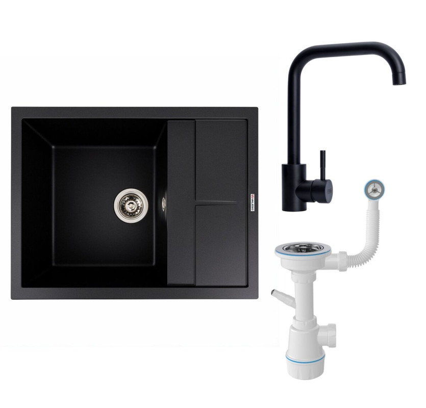 Кухонна мийка Valeso 6550 LOTOS чорна Valeso BG77 чорний Сифон 1041