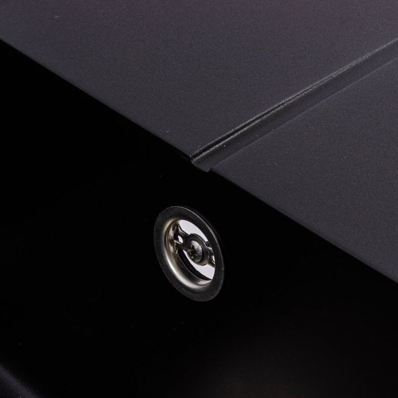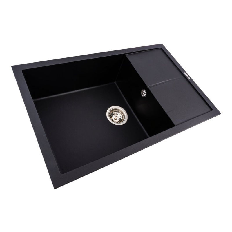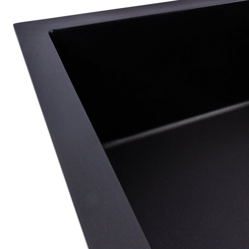 Дизайн: Сучасна врізна мийка з глибокою чашею та практичним крилом у глибокому чорному кольорі. Матова поверхня додає витонченості.