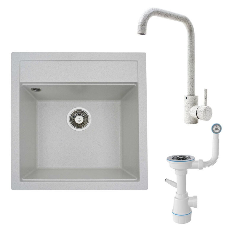 Представляємо вам ідеальне рішення для сучасної кухні — елегантний та надійний комплект, що поєднує в собі стильну гранітну мийку, зручний змішувач та високоякісний сифон. Цей набір створений для тих, хто цінує естетику, довговічність та комфорт у щоденному використанні.