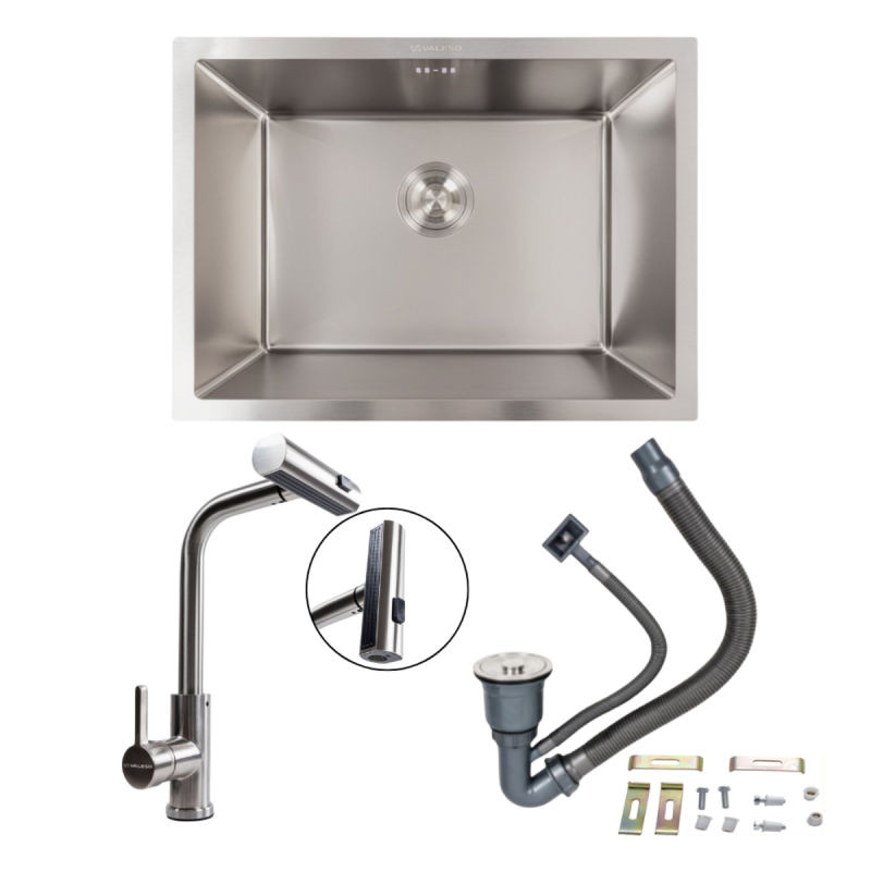 Кухонний комплект: Мийка Valeso Handmade (58x43 см) монтаж під стільницю + Змішувач XK08A