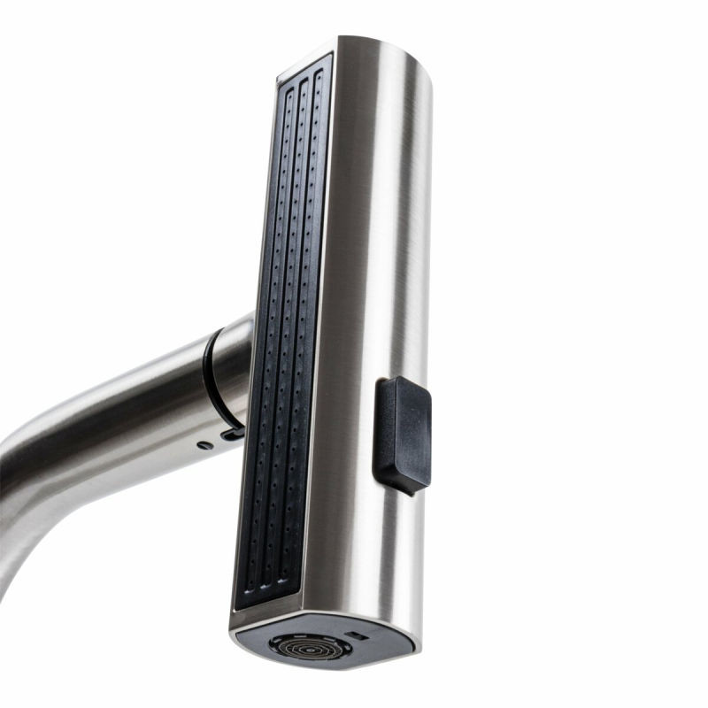 Тип виливу: Висувний, що забезпечує гнучкість та зручність у використанні для наповнення великих ємностей та очищення мийки.