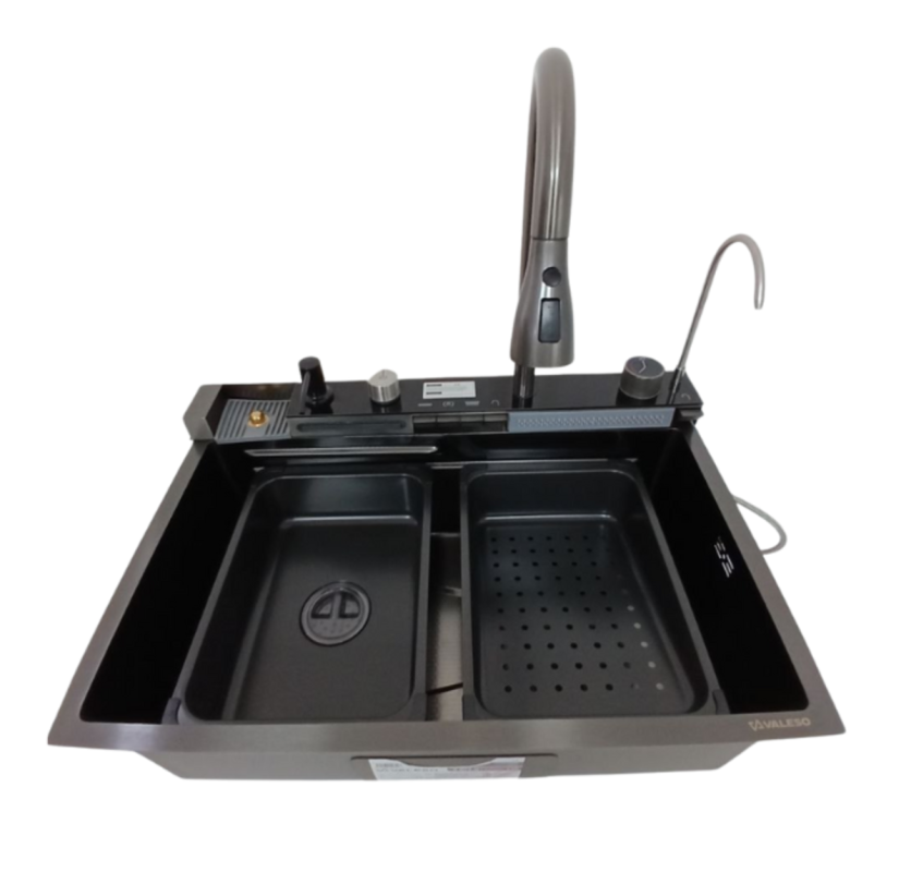 Перетворіть свою кухню на багатофункціональну робочу станцію з інноваційною мийкою Valeso Handmade "Водоспад" у розкішному PVD чорному виконанні. Ця модель поєднує в собі стильний сучасний дизайн та повний набір функцій, що роблять кулінарні процеси максимально комфортними.