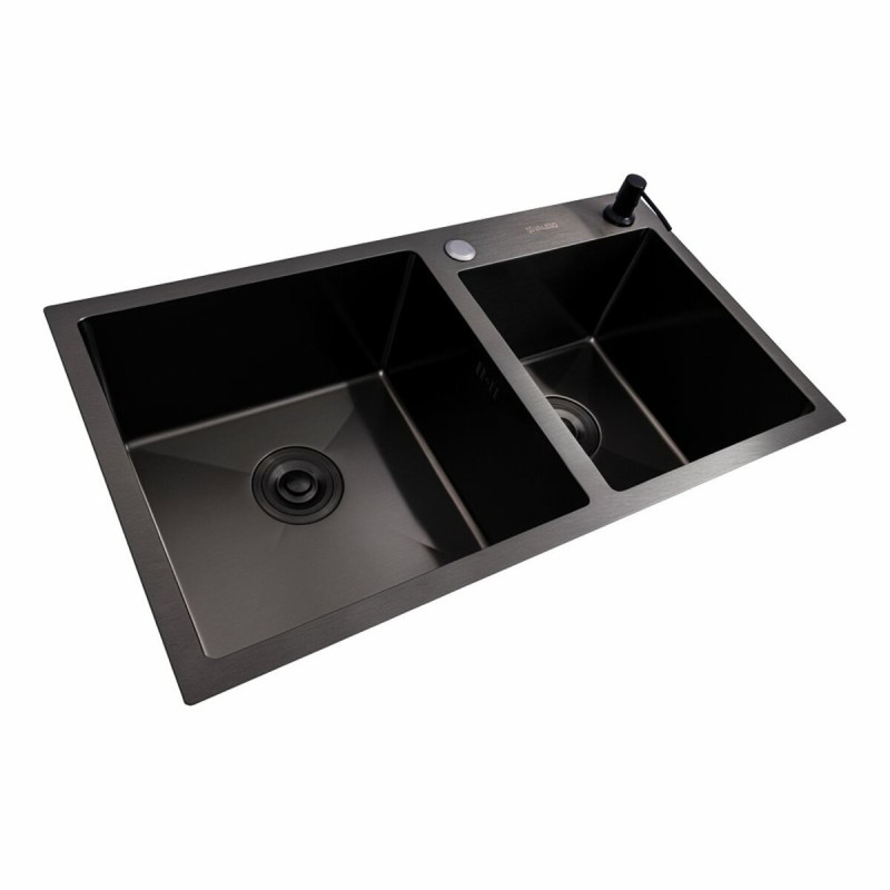 Кухонна мийка Valeso Handmade 78x43 дві чаші PVD чорна (3.0/0.8)