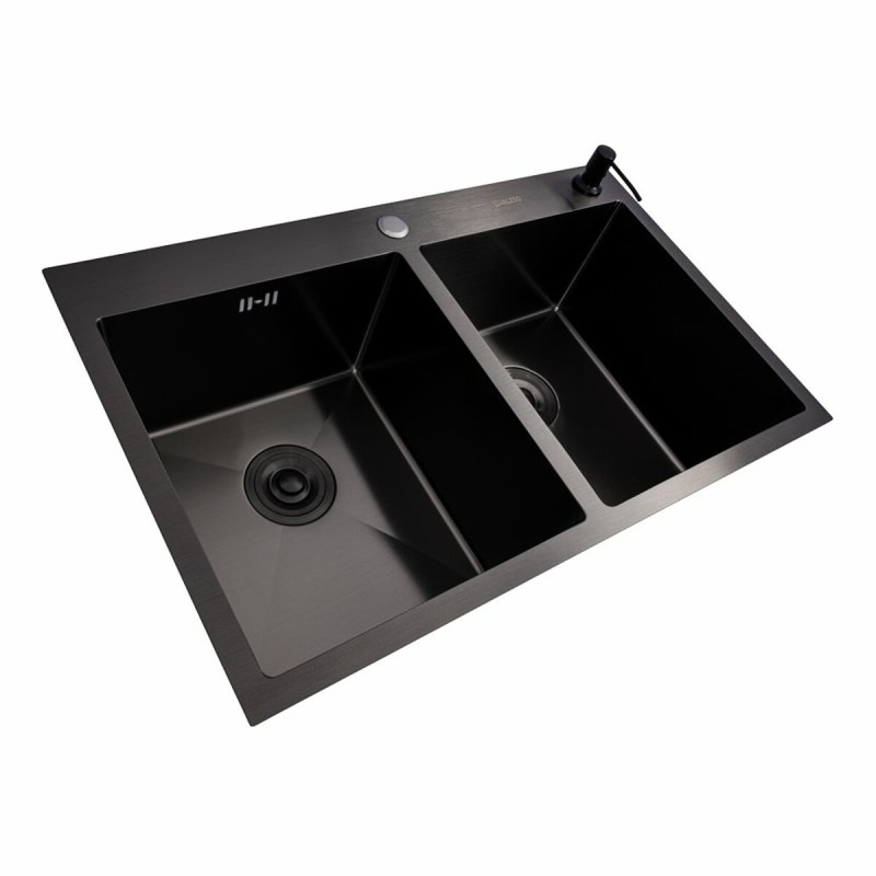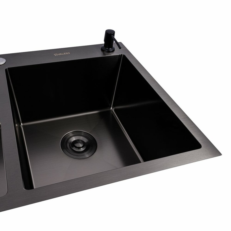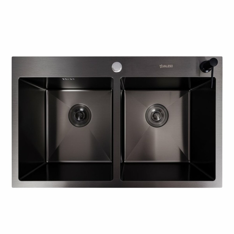 Опис Кухонна мийка Valeso Handmade 78x48 дві чаші PVD чорна (3.0/0.8)