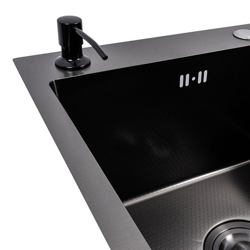 Опис Кухонна мийка Valeso Handmade Decor 65*50 L PVD чорна (сифон круглий, 3,0/0,8)