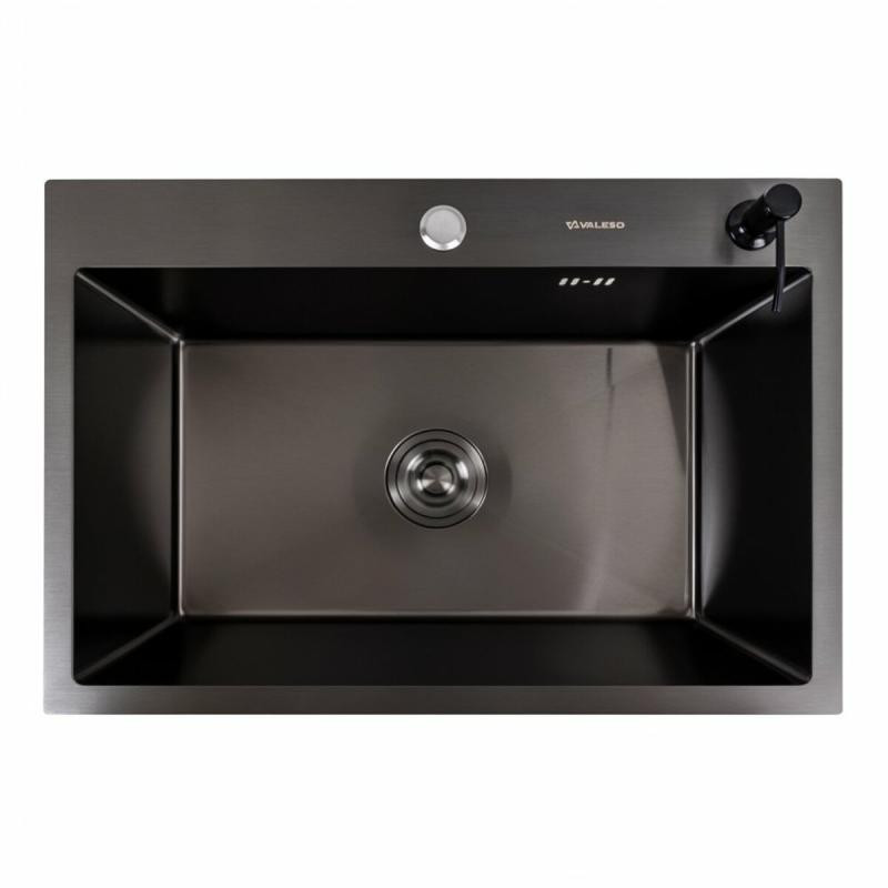 Опис Кухонна мийка Valeso Handmade PVD 65х45 чорна (круглий сифон, 3,0/0,8)