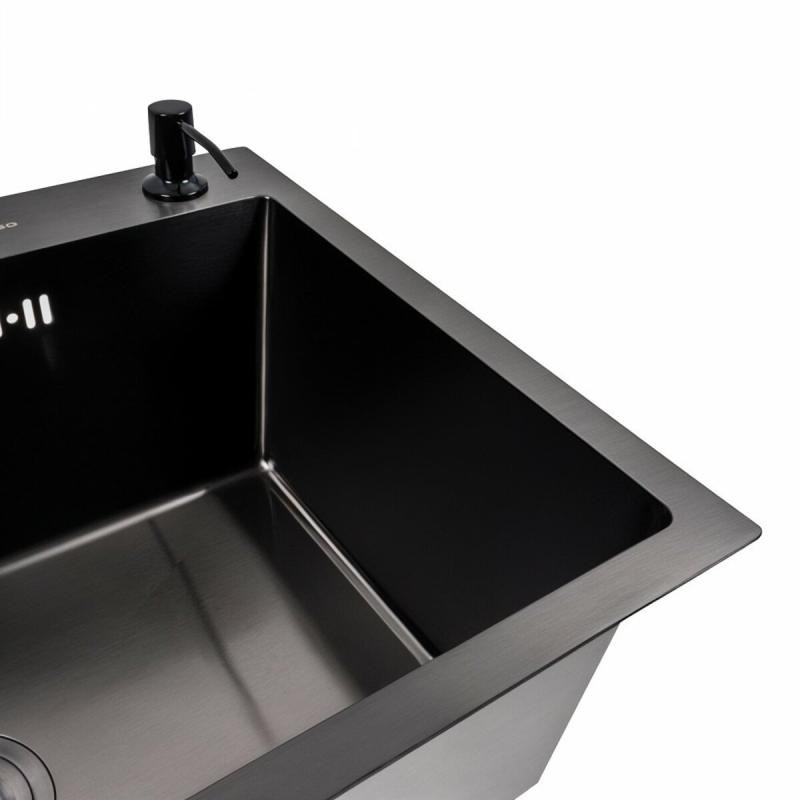 Кухонна мийка Valeso Handmade PVD 65х45 чорна (круглий сифон, 3,0/0,8)