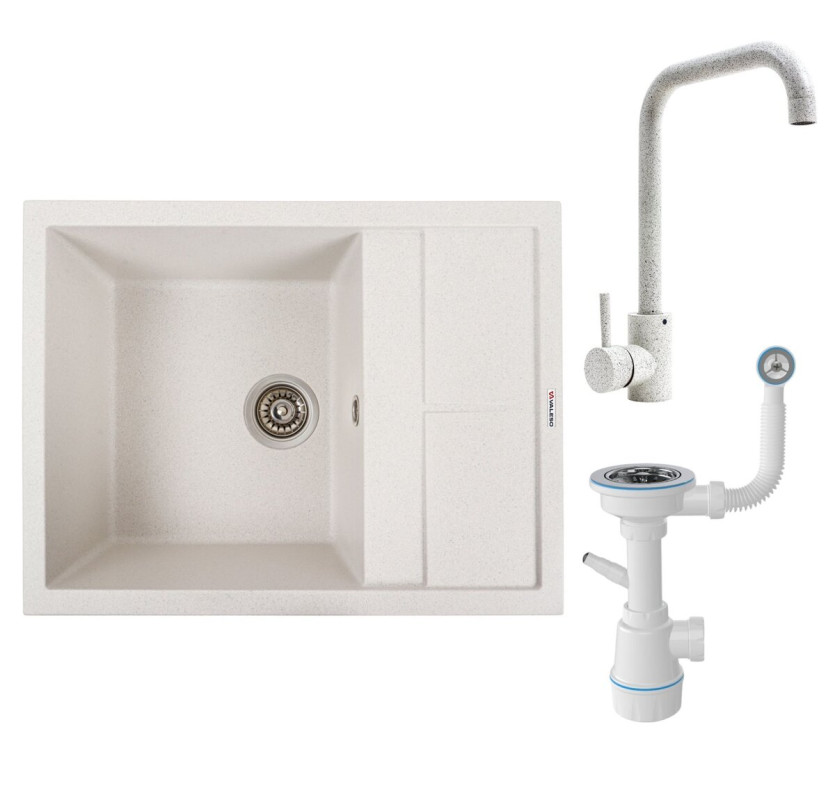Ви можете купити Кухонна мийка Valeso LOTOS 6550 біла в крапку + Valeso NS02A білий в крапку + Сифон 1041 в Києві в інтернет магазині сантехніки Lexon за низькою ціною або оформити доставку по Україні: Харків, Одеса, Дніпро, Запоріжжя, Львів, Кривий Ріг, Миколаїв, Маріуполь, Вінниця, Херсон, Полтава, Чернігів, Черкаси, Житомир, Суми, Хмельницький , Чернівці, Рівне, Кропивницький, Івано-Франківськ, Кременчук, Тернопіль, Луцьк, Біла Церква, Краматорськ, Мелітополь, Нікополь, Слов'янськ, Ужгород, Бердянськ, Бровари та інші міста України.