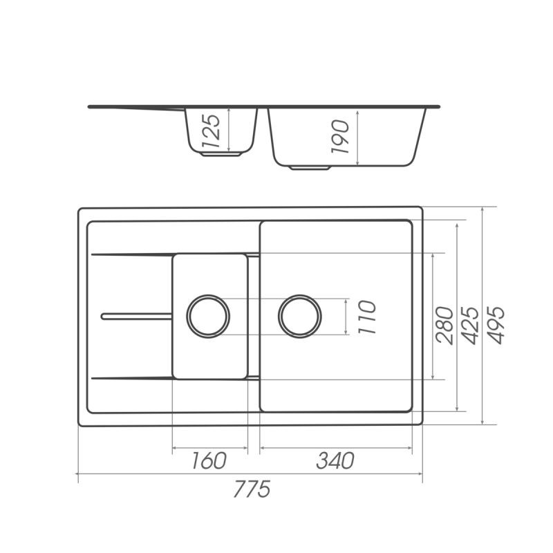 Розмір мийки (ШхГхВ), мм 775x495x190