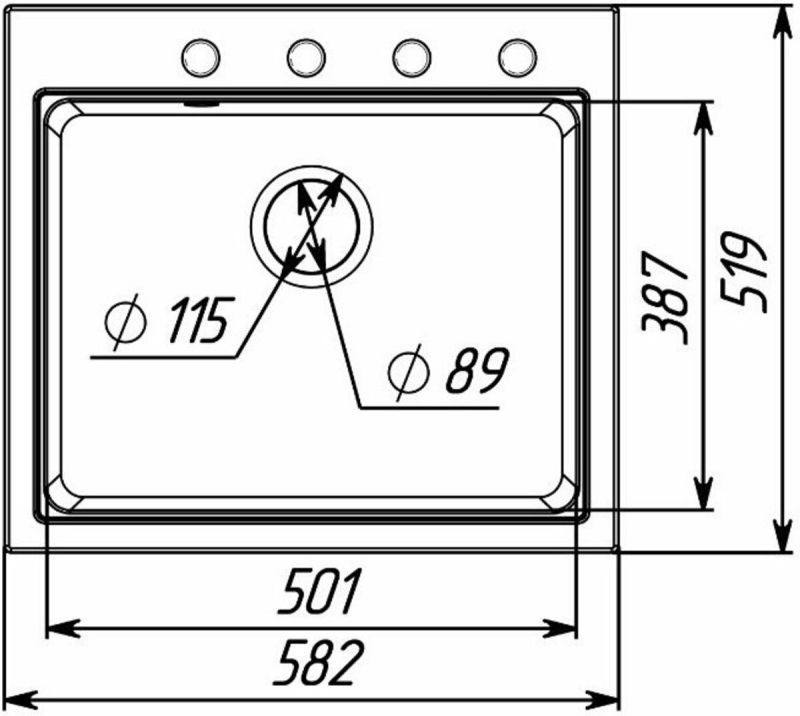 Розмір мийки (ШхГхВ), мм 580х518х210