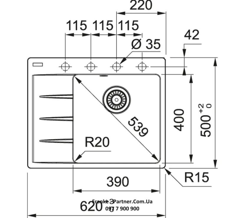 Комплектація | вентиль 3½, перелив, кріплення, сифон |
