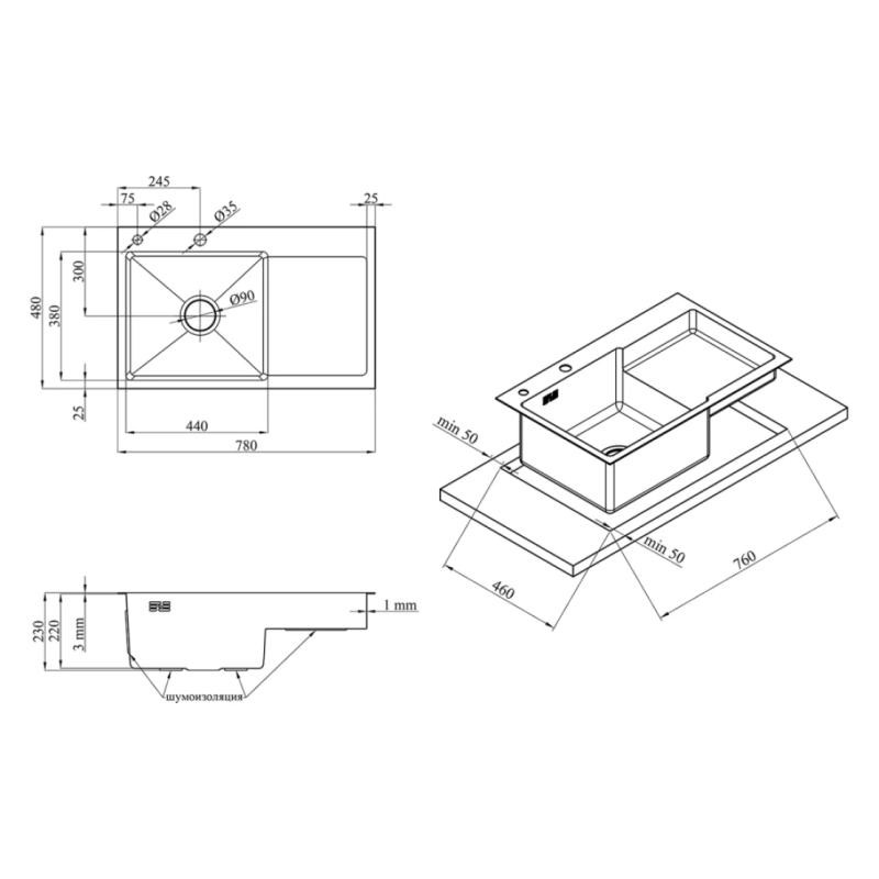 Кухонна мийка Kroner KRP Geburstet - 7848LHM (3,0/1,0 мм)(CV030021) характеристики: