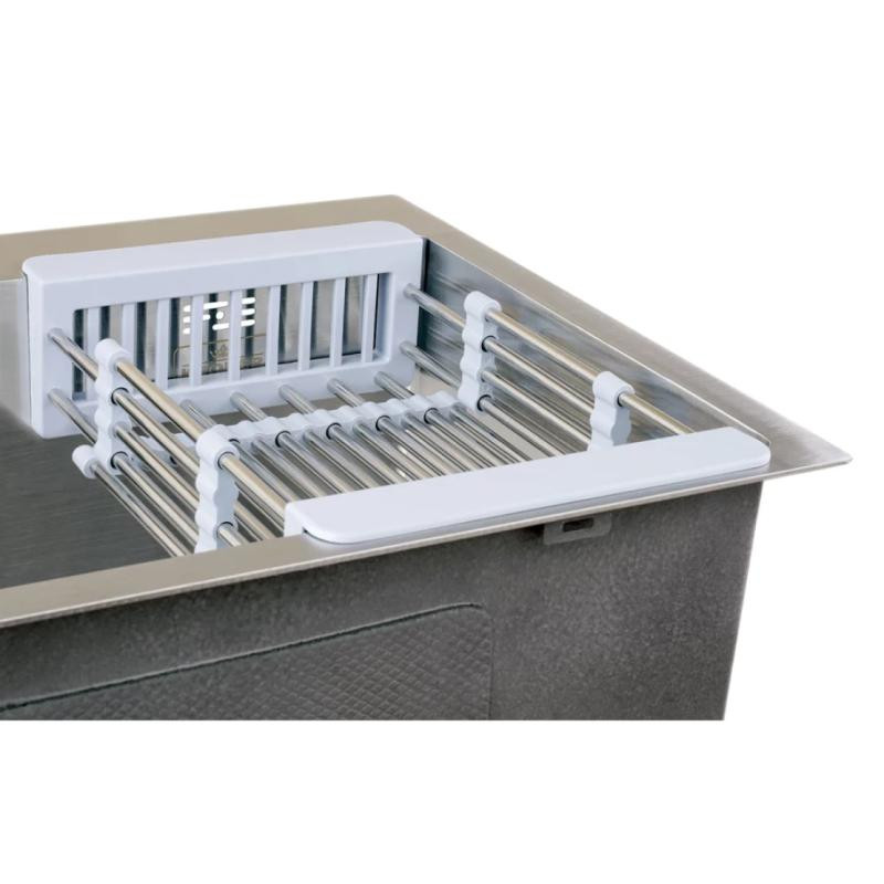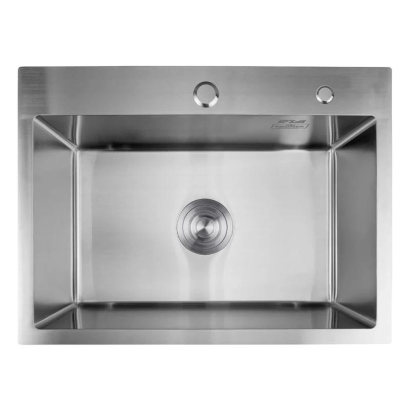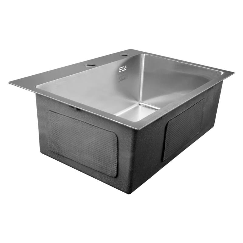 Мийка з нержавіючої сталі Kroner Handmade KRP Geburstet-5843HM CV022801 має прямокутну форму з розмірами 58х43 см. Можливі кілька варіантів встановлення: на стільницю, в один рівень зі стільницею та під стільницю. Дно мийки має заглиблення до зливу у вигляді граней, що забезпечує повне стікання та менше утворення плям від висохлої води. На зовнішньому боці мийка має спеціальне звукоізолююче покриття, яке мінімізує шуми від струменя води. Також у комплекті йде спеціальний кошик для сушіння посуду або продуктів.