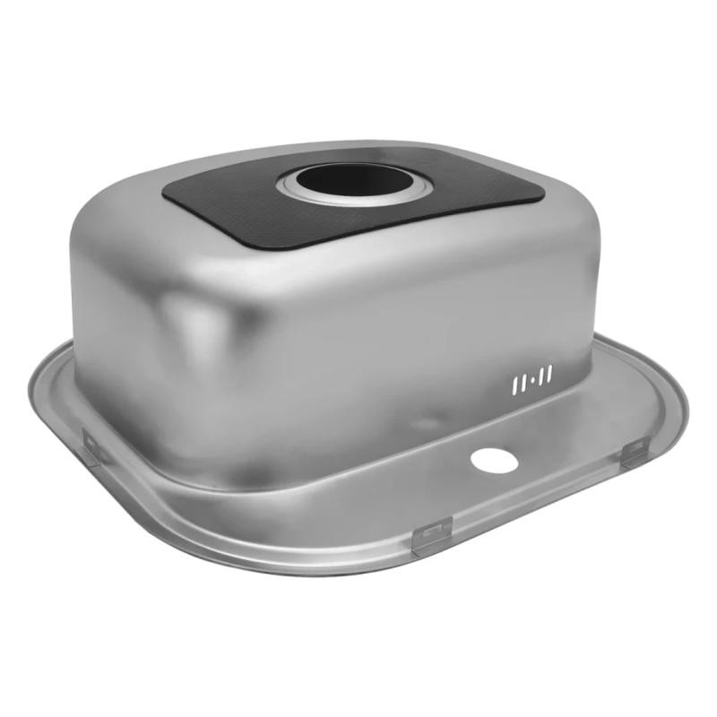 Мийка Kroner KRP Satin-4749 CV022758 нестандартної форми розміром 47х49 см виготовлена з нержавіючої сталі завтовшки 0,8 мм. Сатинове покриття є одним із найкращих для використання на кухнях: гладка поверхня не вбирає забруднення і легко миється, а матовість робить невидимими підсохші краплі води. Таким чином мийка завжди виглядає чистою і доглянутою з найменшими зусиллями з боку господині. Мийка врізна і встановлюється на стільницю. На борту мийки передбачено один отвір для змішувача. Завдяки глибині 18 см і просторим розмірам чаші ви легко зможете мити в ній великий посуд або набирати воду у високі каструлі.