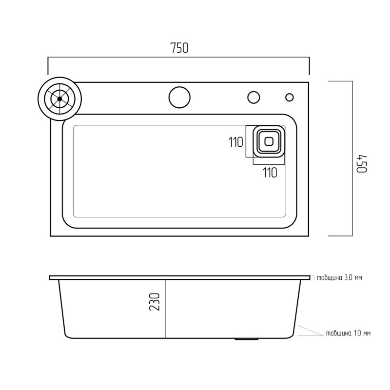 Інноваційний і модернізований дизайн раковини додасть вашій кухні нового відчуття. Ця мийка задовольняє базові потреби і допомагає заощадити кухонний простір. Розміри мийки складають 750х450 мм.Також в цій мийці є вбудований ринзер для миття склянок.